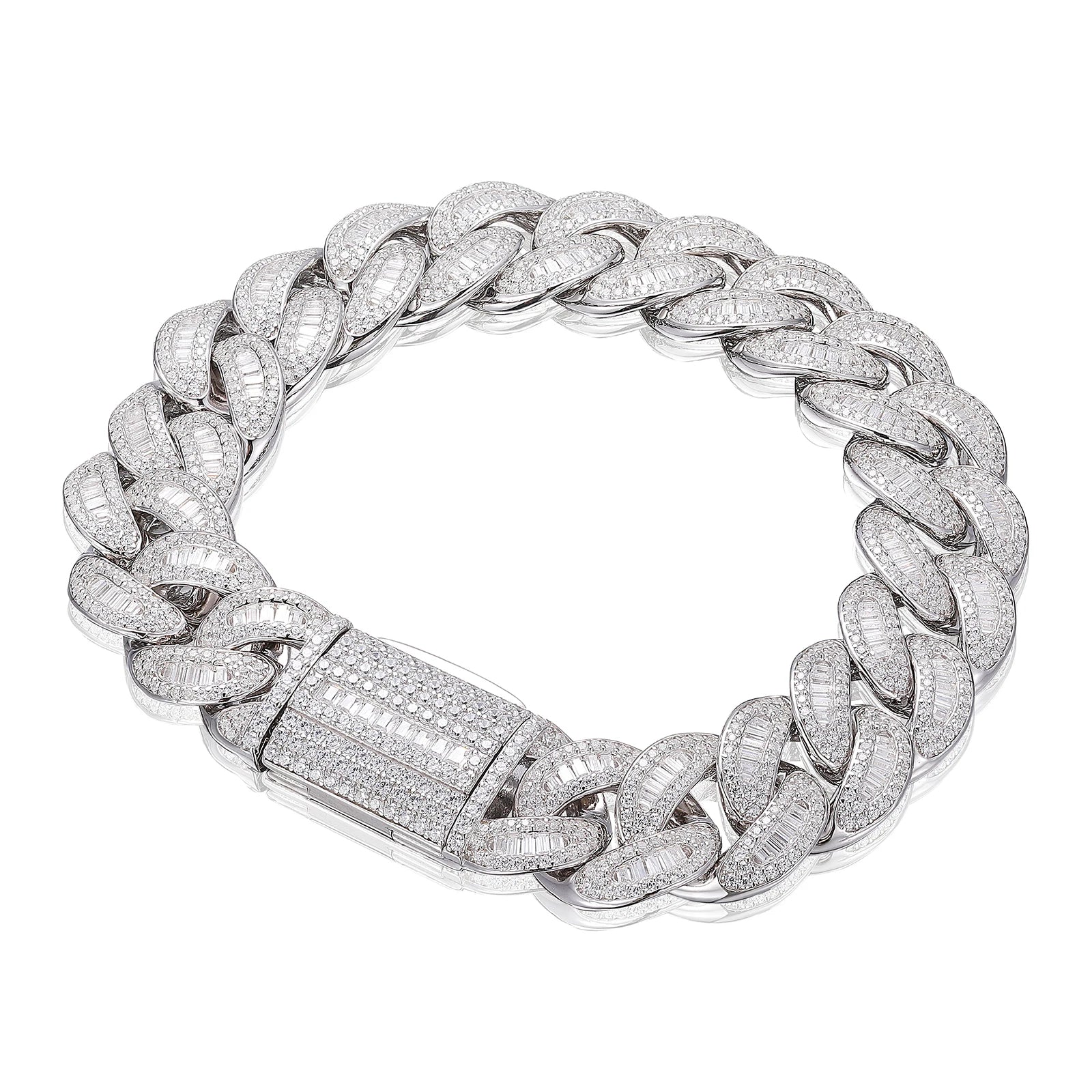 This stylish 14mm Baguette Cuban Bracelet is made of 925 silver, representing a perfect combination of quality and elegance. With its sleek design and durable material, this bracelet is a must-have for any fashion-forward individual seeking to add a touch of sophistication to their outfit.