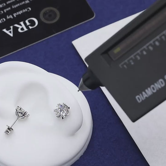 Enhance your daily wardrobe with our 6 Prong SilverStud Earrings. Made with luxury 925 sterling silver and sparkling moissanite gems, these 6.5mm to 8mm earrings add a touch of elegance to any outfit. Fine craftsmanship ensures long-lasting quality. Elevate your style with these must-have studs.