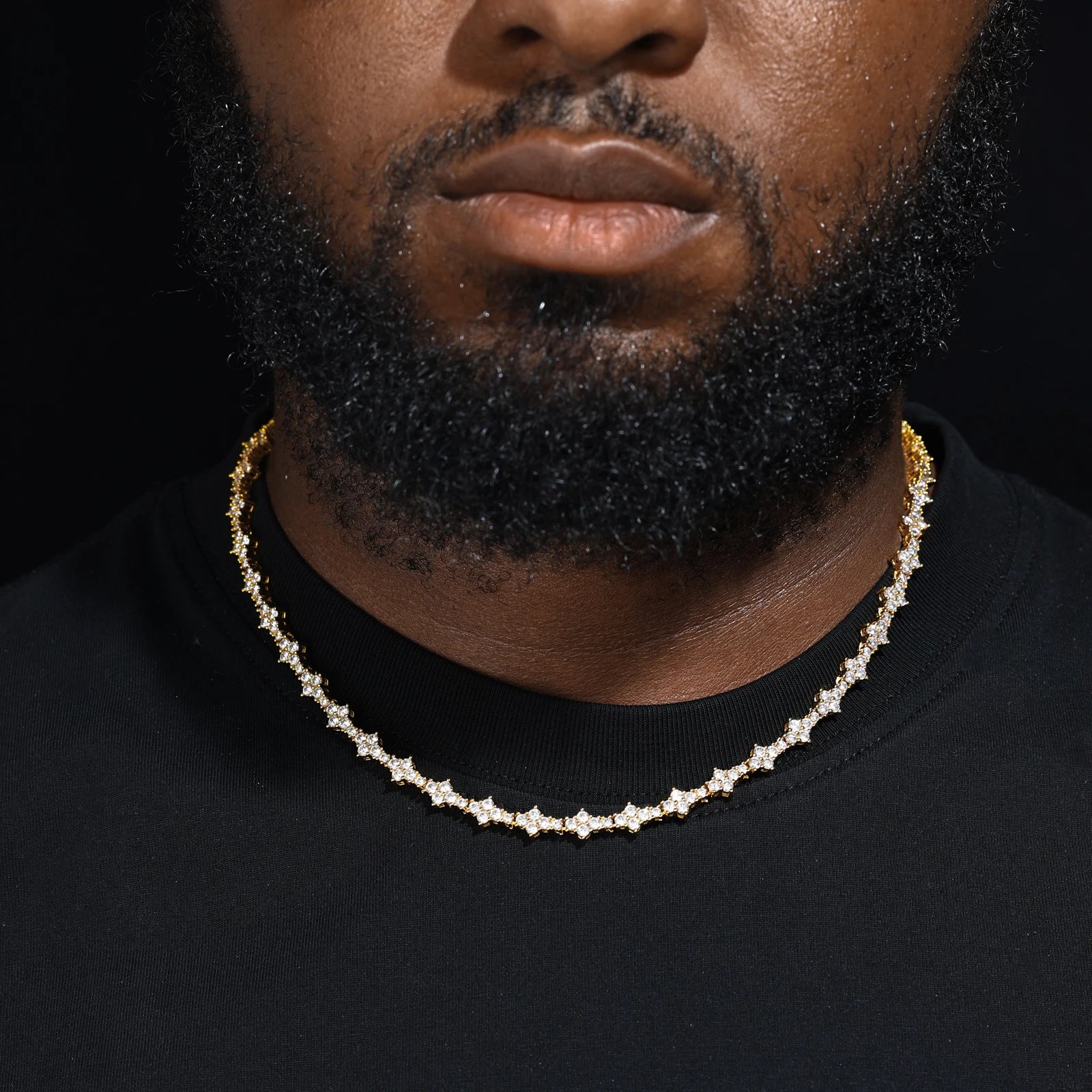 Elevate your style with our Cross Star Tennis Chain. Designed with a stunning cross and star pendant, this chain is the perfect accessory to add a touch of elegance to any outfit. Made with high-quality materials, it is durable and long-lasting, making it the ideal choice for any fashion-forward individual.