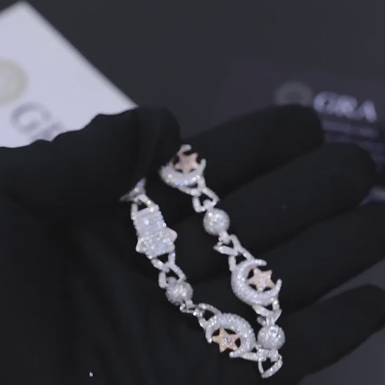 Add a touch of celestial charm to your look with our 13mm Star Moon Cuban Bracelet. The intricate design of stars and moons will elevate any outfit, making it perfect for any occasion. Made with quality materials for a stylish and durable accessory.